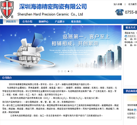 網(wǎng)站建設(shè)公司,做網(wǎng)站優(yōu)化關(guān)鍵詞排名SEO,營銷型,手機(jī)網(wǎng)站建設(shè),響應(yīng)式,品牌型,電商/門戶,外貿(mào)型網(wǎng)站建設(shè). 深圳市海德精密陶瓷有限公司是一家開發(fā)、設(shè)計(jì)、生產(chǎn)、銷售先進(jìn)精密陶瓷產(chǎn)品的公司。地址:深圳市西麗鎮(zhèn)