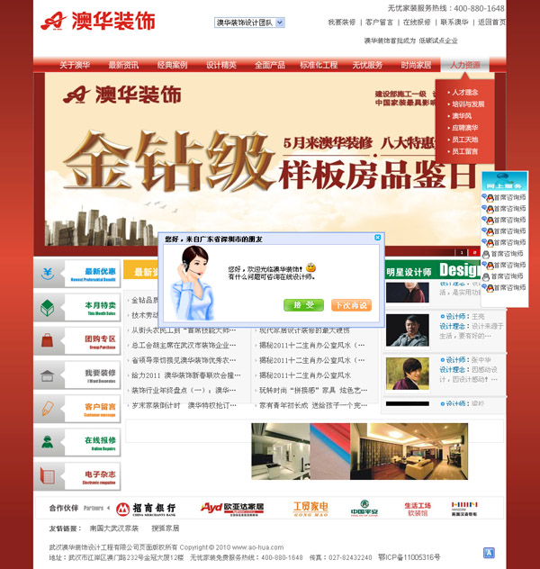 2004年澳華裝飾得到“天下構(gòu)筑裝飾行業(yè)AAA級誠信企業(yè)”稱謂;2005年澳華裝飾入選中國度裝最具影響力十大品牌;2006年創(chuàng)建了武漢市首家范疇最大的家居印象館;2007年樂成推行了武漢裝飾行業(yè)內(nèi)的第一套專門針搪塞施工流程的尺度化管理體系;2008年公司全面實驗“風(fēng)致服務(wù) 滿足100”的生長戰(zhàn)略;2009年,澳華3457風(fēng)致服務(wù)體系極新宣布,助推服務(wù)全面升級;2010年初,澳華裝飾斥資千萬打造武漢家裝業(yè)界唯逐一個自有型別墅樣板樓,開創(chuàng)高端操持新業(yè)態(tài),同年7月,武漢第一個家裝操持會所--澳華裝飾操持會所創(chuàng)建……
