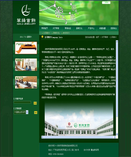 翠綠公司擁有設(shè)計(jì)研發(fā)、生產(chǎn)加工、銷售展示一條龍的現(xiàn)代化工業(yè)園——“翠綠珠寶首飾工業(yè)園區(qū)”,廠房面積達(dá)20000余平方米,擁有黃金、鉑金、炫舞金、鑲嵌等4個專業(yè)生產(chǎn)廠;從日本、意大利等國家引進(jìn)國際先進(jìn)首飾生產(chǎn)設(shè)備300余臺(套);高級技師、設(shè)計(jì)師等專業(yè)人才1200余名。珠寶首飾花色品種逾60000個,產(chǎn)品覆蓋全國90%以上的區(qū)域,形成了縱橫交錯的大中華營銷網(wǎng)絡(luò)。公司經(jīng)過堅(jiān)持不懈的研發(fā)投入,開發(fā)了大量引領(lǐng)國內(nèi)珠寶首飾行業(yè)潮流的新產(chǎn)品,推出的“炫舞金”時尚千足黃金精品、“完美閃耀”鉑金系列以及“360度炫彩”美鉆等精品系列獲得了業(yè)界及消費(fèi)者的普遍贊許。