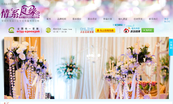 情系良緣前身為帝爾婚禮策劃中心成立于2009年5月,多年來(lái)帝爾人不斷摸索與健全服務(wù)體系,堅(jiān)持創(chuàng)意領(lǐng)先的中心思想,保證客戶婚禮的創(chuàng)造性與完整性,2011年在婚慶行業(yè)努力3年的帝爾婚慶公司漸露頭角,2012年臺(tái)灣金點(diǎn)投資注資百萬(wàn),創(chuàng)意打造“情系良緣”品牌,情系良緣婚慶品牌隸屬于深圳市情系一生文化傳播有限公司,意在打造深圳婚慶第一品牌, 引申中外文化精髓,奉獻(xiàn)于中國(guó)婚慶品牌建立和婚慶品牌梳導(dǎo)。