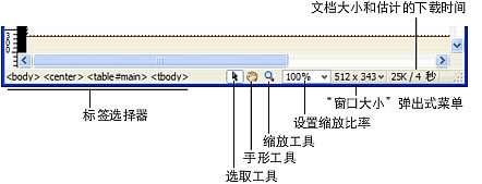標(biāo)簽選擇器顯示環(huán)繞當(dāng)前選定內(nèi)容的標(biāo)簽的層次結(jié)構(gòu)。單擊該層次結(jié)構(gòu)中的任何標(biāo)簽以選擇該標(biāo)簽及其全部內(nèi)容。單擊 可以選擇文檔的整個正文。若要設(shè)置標(biāo)簽選擇器中某個標(biāo)簽的 class 或 id 屬性,請右鍵單擊 (Windows) 或按住 Control 鍵并單擊 (Macintosh) 該標(biāo)簽,然后從上下文菜單中選擇一個類或 ID。標(biāo)簽選擇器是選擇標(biāo)簽的首選方法,因?yàn)樗梢源_保您始終準(zhǔn)確地選擇標(biāo)簽。手形工具使您可以單擊文檔并將其拖入"文檔"窗口。單擊"選擇"工具可禁用手形工具。"縮放"工具和"設(shè)置縮放比率"彈出式菜單可以讓您為文檔設(shè)置縮放比率。"窗口大小"彈出式菜單(僅在"設(shè)計(jì)"視圖中可見)用來將"文檔"窗口的大小調(diào)整到預(yù)定義或自定義的尺寸。"窗口大出式菜單的右側(cè)是頁面(包括全部相關(guān)的文件,如圖像和其它媒體文件)的文檔大小和估計(jì)下載時(shí)間。
