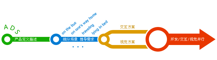 從源頭的戰(zhàn)略層面上建立了統(tǒng)一的認(rèn)知,我們接下來(lái)開(kāi)展的工作就有根據(jù)了。既然核心是解決“移動(dòng)場(chǎng)景聽(tīng)歌“的問(wèn)題,我們必須首先弄清楚什么是”移動(dòng)場(chǎng)景“?移動(dòng)環(huán)境和PC環(huán)境差異甚大,碎片時(shí)間的使用更為突出。用戶一天是怎么活動(dòng)的呢?每次拿起手機(jī)聽(tīng)音樂(lè)都是什么時(shí)間?上班的公車上、走路、晚上睡覺(jué)前?在這些點(diǎn)上用戶都會(huì)做些什么?簡(jiǎn)單的腦暴可以羅列各個(gè)可能的使用場(chǎng)景,但還比較粗糙。場(chǎng)景的構(gòu)想需要建立在高度的認(rèn)知上,這時(shí)候用研的切入顯得相當(dāng)關(guān)鍵,用戶特征、喜好、使用習(xí)慣…對(duì)用戶越了解,場(chǎng)景就越能貼近真實(shí)、越能發(fā)現(xiàn)更多的細(xì)節(jié)。這些都為后續(xù)的設(shè)計(jì)決策提供了有力的依據(jù)。