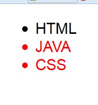 1 <!DOCTYPE html> 2 <html lang="en"> 3 <head> 4 <meta charset="UTF-8"> 5 <title>筆記</title> 6 <style> 7 li+li{ 8 color: red; 9 } 10 </style> 11 </head> 12 <body> 13 <ul> 14 <li id="html">HTML</li> 15 <li id="java">JAVA</li> 16 <li id="css">CSS</li> 17 </ul> 18 </body> 19 </html>