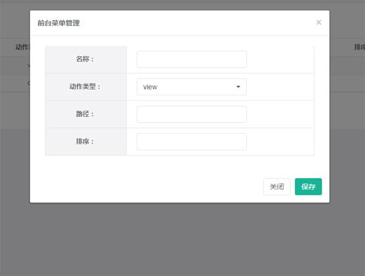 aria-hidden="true" id="btnCancel"> × </button> <h4 class="modal-title" id="myModalLabel"> 前臺菜單管理 </h4> </div> <div class="modal-body"> <div> <table width="100%" border="0" class="userCon_2"> <tr> <th width="30%">名稱:</th> <td width="70%"> <input type="text" name="Name" class="form-control"